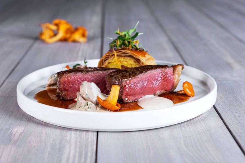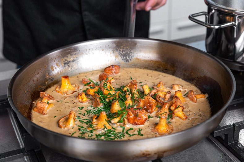 Gemeinsam mit unserem Koch wurde gebraten, gekocht und dekoriert. Die Pilzsaison ist fast vorüber - wir nutzten die Gelegenheit noch einmal, um fantastische Pilz-Fleisch-Gerichte dem Kunden schmackhaft zu machen.
