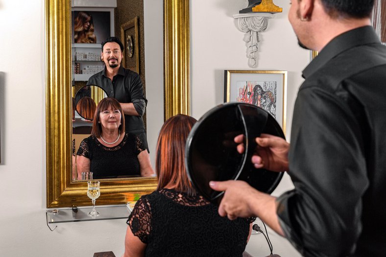 Kunstvolles Handwerk findet man beim Coiffeur Michael Mayr in der Linzer Rainerstraße genauso wie angenehmes Ambiente und eine herzliche Atmosphäre – sozusagen ein Reserve- Zuhause. All das durfte ich bei meinem Werbeshooting für einen Tag lang mit ihm und seinen Kundinnen gemeinsam erleben.